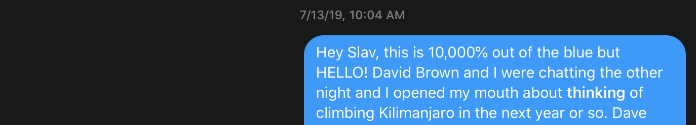 And I’m not sure what led me to this. But it’s the same date. I messaged the only person I personally knew who had climbed Kili (and had also very recently summited the Everest). I don’t know where my brass lil stones came from – but I sent it – and the dream siren did a double take, whispering “soon?” and I whispered back “…maybe.”
