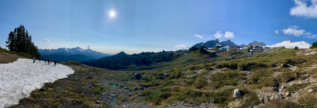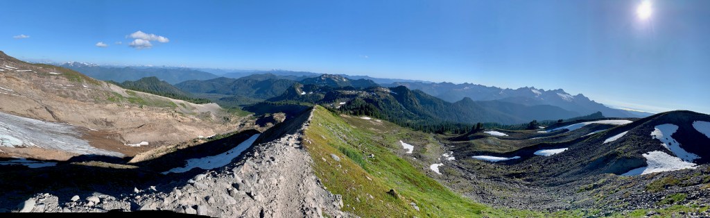 I tried to catch B’s eye – to tell her I was at peace with us stopping here. I didn’t want her to feel like my cotton candy pride was influencing her decision for her safety, for our group’s safety. She was facing away, looking west; gazing over the ‘horns’ of Lincoln & Colfax Peaks towards Whatcom County, having her own moment with her soul.