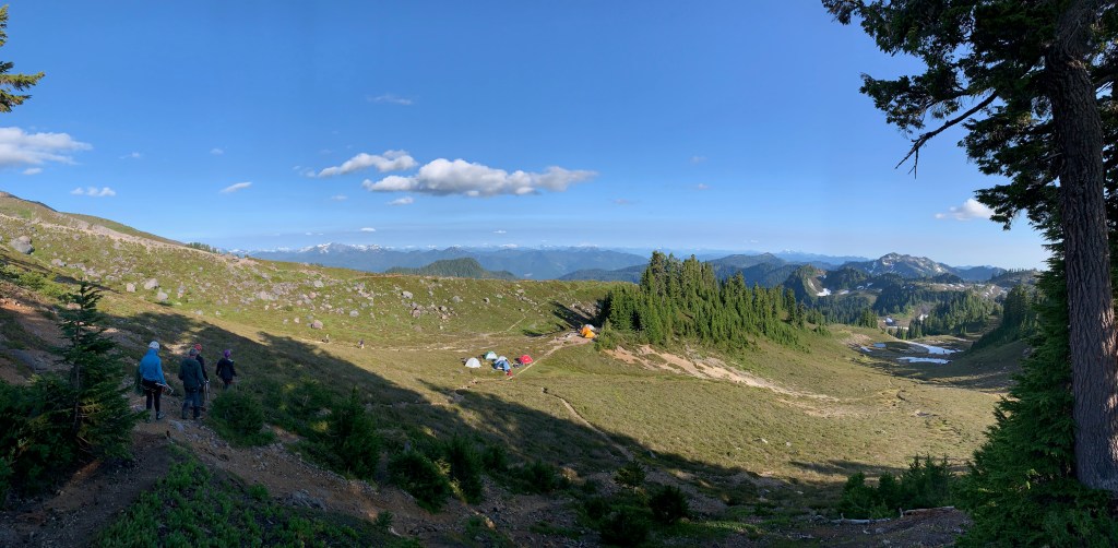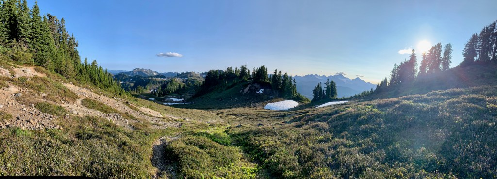 I grabbed some stuffing and mashed potato dinner with shaky hands, weakly smiling at another hiker who was back and happily chattered away about their team’s experience. I nodded politely and walked off to refill and repurify 2 liters of water for B and I. Sitting on a small boulder next to the brook, circling my Steripen around and around the rim of my Nalgene bottle, I looked at the alpine meadow, towards the setting sun, and briefly felt my tired little dragon give a tiny wing flap. Like when your dog is tired or sleepy, laying on the ground and you call their name and they give a single tail wag, a soft ‘wap’ onto the floor. They’re tired but they acknowledge you – that was it. A brief ‘thank you’ to my mind and body for the focus. For the grit. For not giving up. I was too beat for any other reflection.