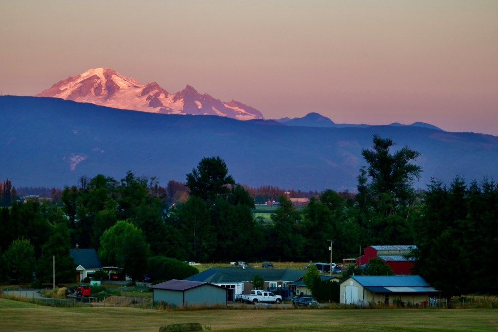 The following afternoon, I waited in my bathrobe for B to get done with the shower and I looked out at Baker from the window at my parent’s house. Bathed in pink and lavender as the sun set, I couldn’t reconcile this view with these legs with that experience the day before.