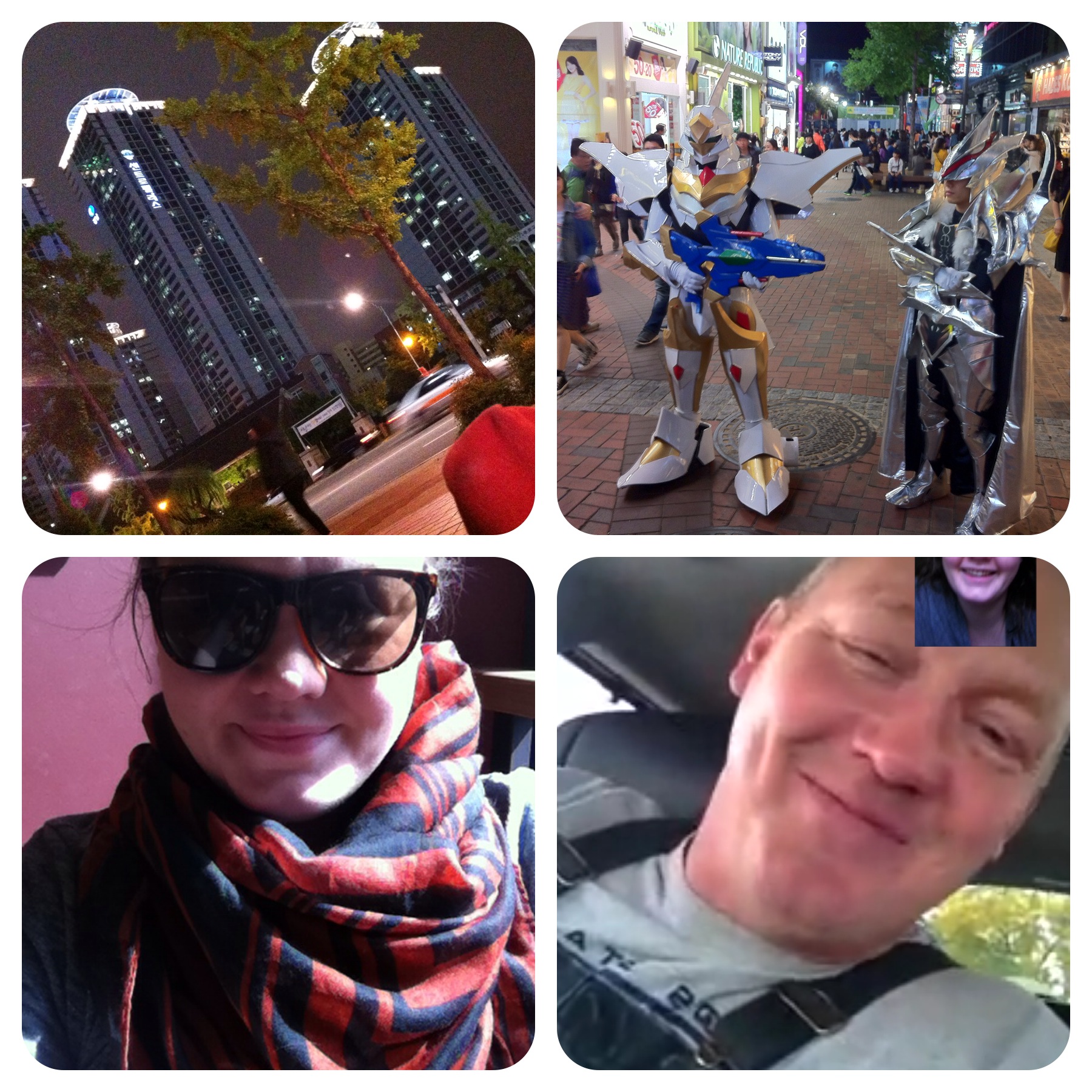 As I walked behind Roy-Gene and Marty, I realized that I didn’t need to speed up. If they wanted to walk fast, go for it. I’m walking along a river in Korea. IN KOREA. There’s maybe 3 of you reading this blog who will ever be able to do that. And here I am worrying about job opportunities when I get back in June, 6-7 months away. There’s a mammoth, gently-curving monorail being built along the river that makes all of the neon behind it look like the world Blade Runner was supposed to be. My donut was nothing like the Lynden Dutch Bakery nor Shipley’s (long may they prosper), but it was a donut. I’m healthy. I have legs that work. A threadbare NorthFace. Jeans without holes in the thighs (for now). Sturdy fake Converse that carry me. A comfortable bank account where I can buy faux-Amelia Earhart fur hats and peanut M&Ms and a random pomegranate. An iPhone that I can take pictures and capture my sights.